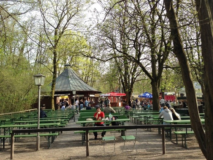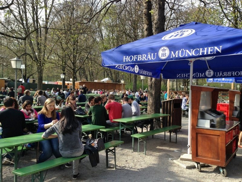 A fim de proteger as caves do sol e do calor, os cervejeiros também plantavam castanheiras. Era ali mesmo, debaixo da sombra das árvores, que se consumia cerveja em temperatura fresca quando o verão chegava. Nascia a tradição dos biergartens, que ficaram populares entre os cidadãos, mas descontentou os donos de tabernas de Munique, que perderam clientes para os jardins de cerveja. Para serenar os ânimos, em 1812, o rei Maximilian Joseph I liberou o consumo da bebida nos jardins das cervejarias, mas não permitiu a venda de comida por esses estabelecimentos. Segundo o órgão oficial de turismo de Munique, existem 180 jardins de cerveja na cidade, espalhados por praças e parques — tem até no aeroporto! O mais antigo, ligado à cervejaria Augustiner, data de 1812, é também o maior, com capacidade para receber até 8.000 pessoas. Um biergarten pode ter música ao vivo ou não. Ou apenas o som das conversas, ruidosas na direta proporção em que se acumulam canecas vazias sobres as mesas.