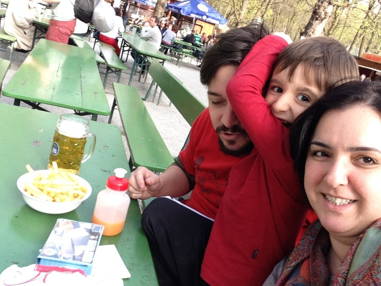 Compramos uma porção de batata frita e duas canecas de cerveja, e nos sentamos para fazer um piquenique à tarde. Em frente às mesas, um parquinho com brinquedos de madeira é todo das crianças. Joaquim se aventurou por escorregadores, escaladas e afins enquanto Nath e eu curtimos o fim de tarde. A sensação de estar num biergarten é a de quem participa de uma grande festa ao ar livre, em que se celebra a alegria do bem-viver.