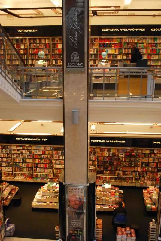 Estranho entrar numa livraria e olhar para as letras como se fossem parte de uma instalação de artes plásticas, e não palavras. Tive essa sensação enquanto percorri os corredores da Alexandra, em Budapeste. Nos nomes das seções, colocados acima das prateleiras, as palavras se aglomeravam. Tentei encontrar qualquer sentido para a raiz de uma ou de outra expressão, apelando para todas as línguas com as quais já tive contato. Só funcionou com as óbvias ‘Sport’ e ‘Hobbi’.