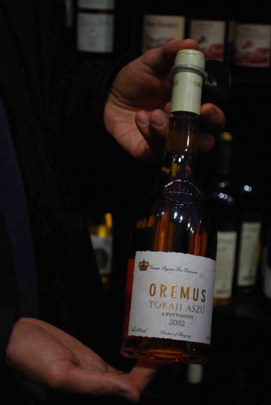 Ué, bebidas? Pois, outra surpresa que tive na saída. No térreo – para quem entra a seção fica logo à direita –, as publicações dão lugar às garrafas. Dá para comprar ali o tokaji (em húngaro, tokaj), vinho tradicional do país. Um dos tipos mais conhecidos de tokaj é o Aszú, que eu provei no jantar, acompanhando a sobremesa. A Wikipedia informa que gente do naipe de Luiz XV, Beethoven e Goethe consumia tokaji. Sei lá, de todo modo, soa quase uma heresia eu dizer que achei doce demais… Ok, é para se tomado com doces. Mas o problema para mim está justamente aí. Não consigo com nada muito doce. Acho que prefiro ficar com a sopa de letrinhas.