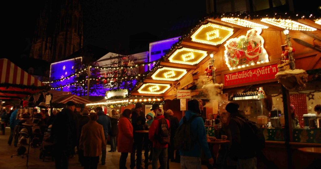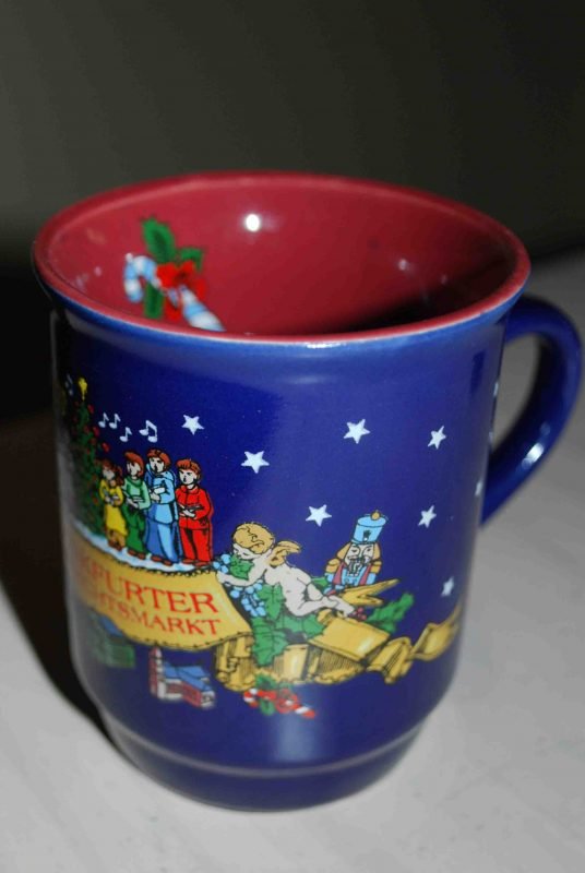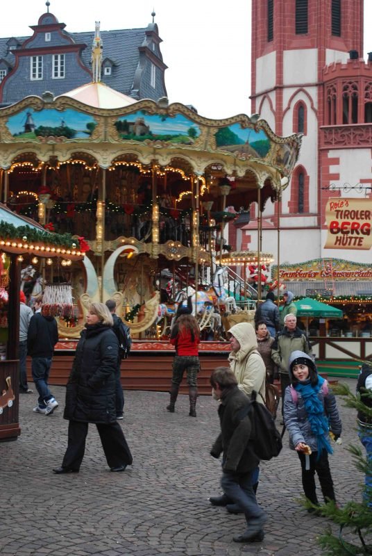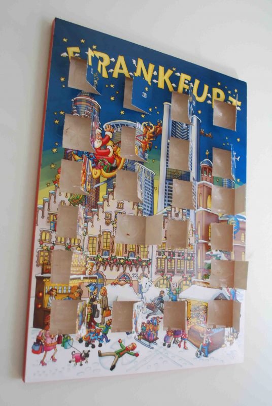 Com as janelinhas fechadas, aparecia o desenho do mercado de Natal de Frankfurt