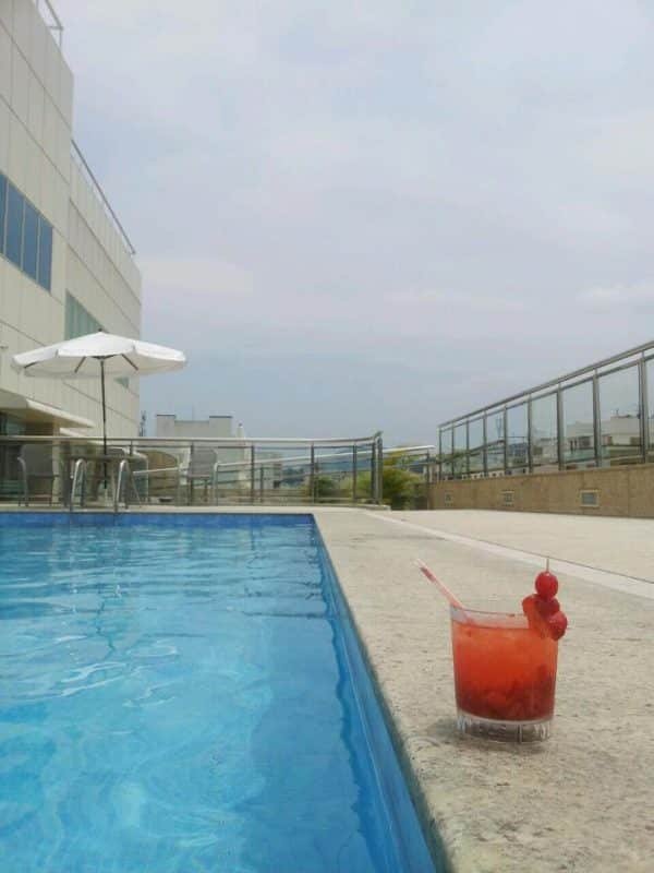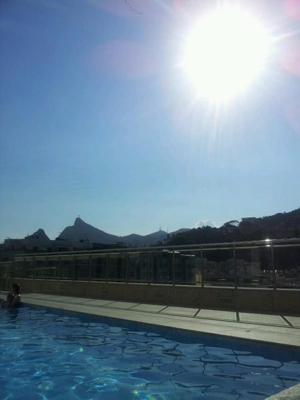 Quando reservei, nem me dei conta de que o hotel tinha piscina. Foi uma excelente surpresa quando descobrimos que poderíamos aliviar o calor e ainda curtir a vista da cobertura. No primeiro dia, o tempo ficou nublado, mas, no seguinte, deu para ver o Cristo Redentor de longe, enquanto dávamos um mergulho. Eu não resisti e pedi uma caipiroska de frutas vermelhas. Do que é feita a felicidade, senão, desses pequenos prazeres? Passei uma tarde deliciosa com meu marido e meu filho.