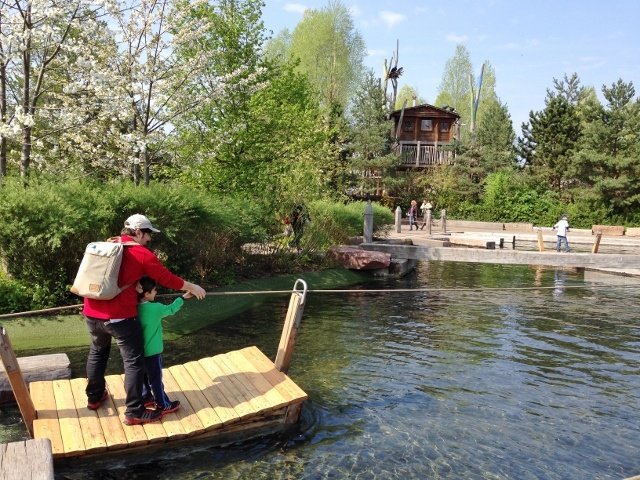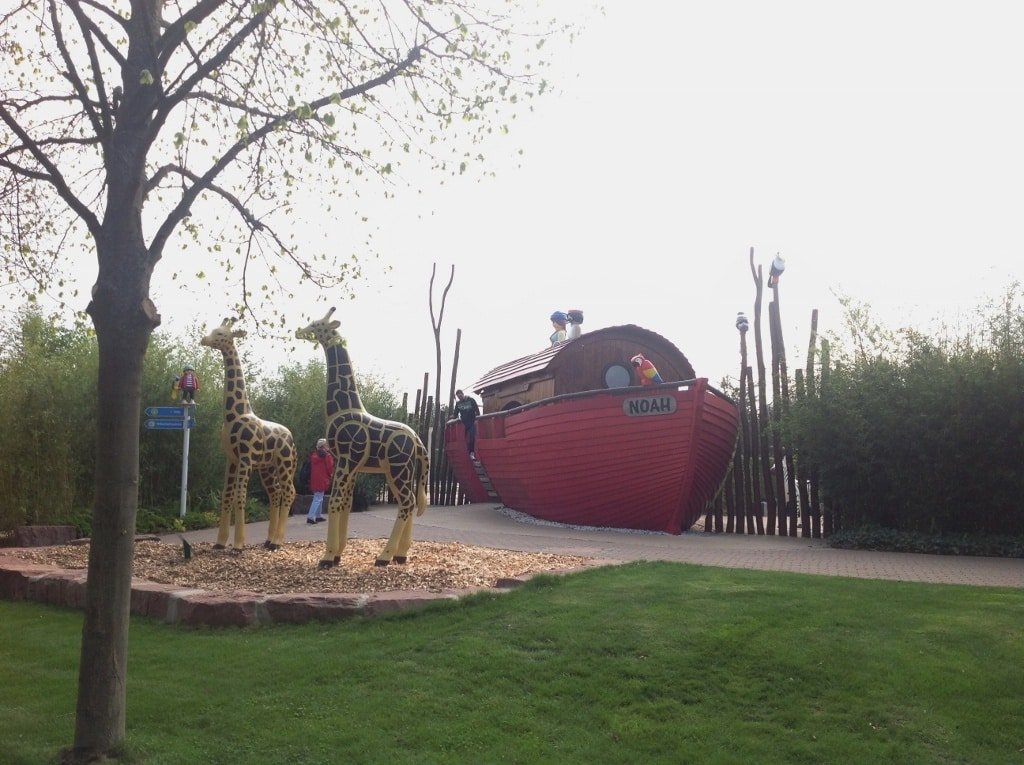 Com tantas atrações para brincar, natural que as crianças fiquem eufóricas. Quim, por exemplo, não se continha a cada novidade que surgia durante a nossa visita. “Olha a girafa!”, apontou para o par de animais diante da Arca de Nóe (Arche Noah, no nome alemão). Aí correu para a casa fofa da fazendinha (Bauernhof), onde brincou de ordenhar a vaca.