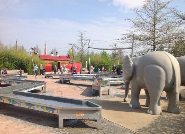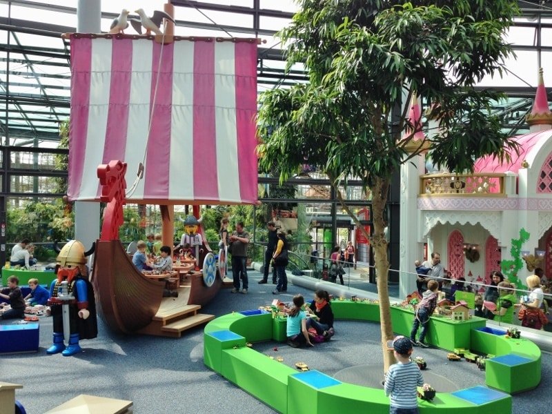 De fato são imperdíveis. Mas perde muito quem se limita a conhecer a dobradinha popular entre os cerca de 700 mil visitantes anuais (em 2016, o parque ultrapassou a marca recorde de 800 mil visitas na temporada). Distante em torno de 15 km de Nuremberg, o parque nos surpreendeu pela quantidade de atividades disponíveis. Em 90.000 m² de área, se espalham setores temáticos de Playmobil, com bonecos e cenários em tamanho aumentado. Além de cavaleiros e piratas, há cowboys, dinossauros, construtores e animais. Entre outras possibilidades para a criançada se soltar estão um lago com pedalinhos, o playground de chafarizes, a área de parcours com um pequeno pula-pula e um parque de atividades como minigolfe, boliche e bocha.
