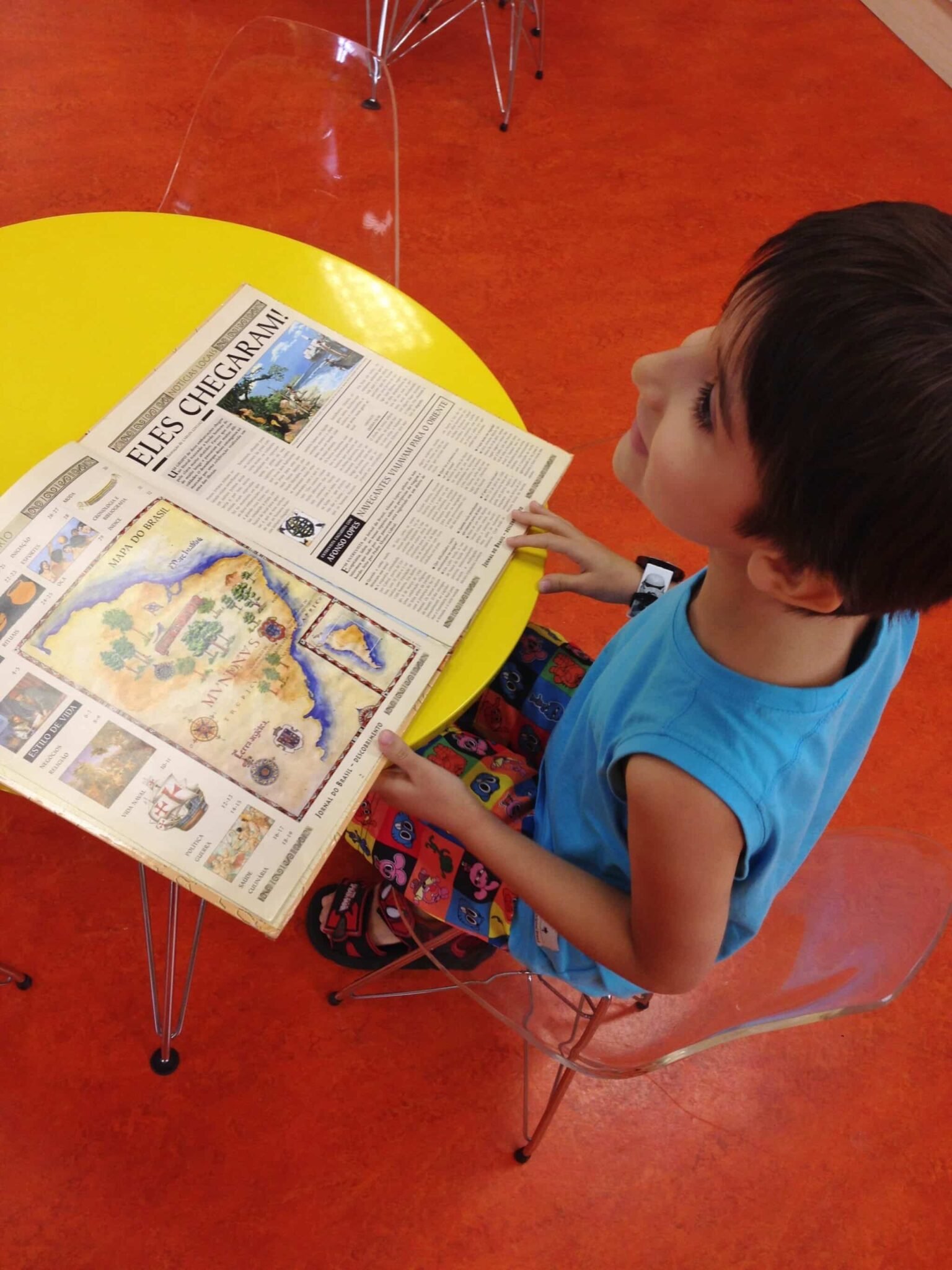 Visitamos Rá-Tim-Bum sem sobressaltos. Na maior tranquilidade, Joaquim conheceu cenários do programa que não viu na TV, mas que conhece por meio das músicas e do filme.