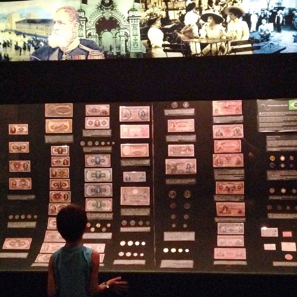 Antes de deixar o CCBB, checamos se havia outra exposição aberta ao público. A funcionária informou que não, mas que podíamos visitar as mostras permanentes e que, considerando que estávamos com uma criança, Joaquim poderia gostar de ver as moedas.