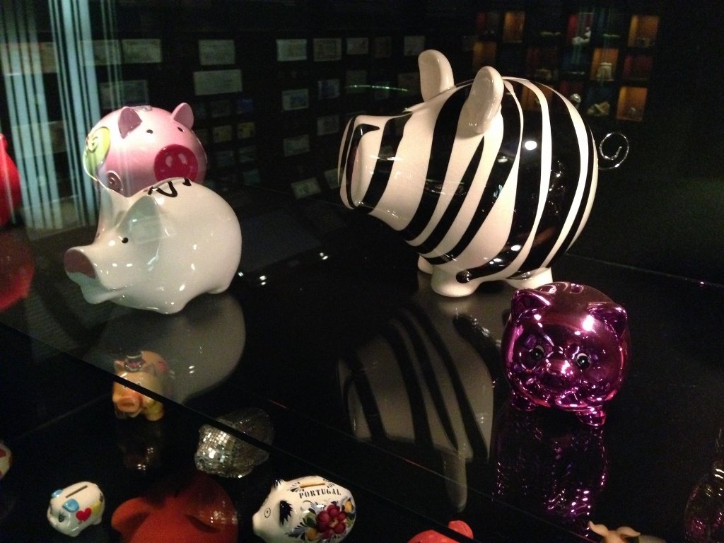 Caminhe sobre um rio de niqueis debaixo do piso e, ainda no chão, leia frases em que dinheiro é o assunto. As vitrines dispõem os exemplares agrupados por temas, que vão da escolha de desenhos para ilustrar as notas (animais, construções, personalidades) a uma parede de cofrinhos de porquinhos e outra com artigos já usados como dinheiro. Na era do PayPal, do cartão de crédito (até o Banco Imobiliário do Quim tem dinheiro de plástico), é legal relembrar que tudo foi moeda nessa vida: sal, marfim, cacau, pau-brasil…