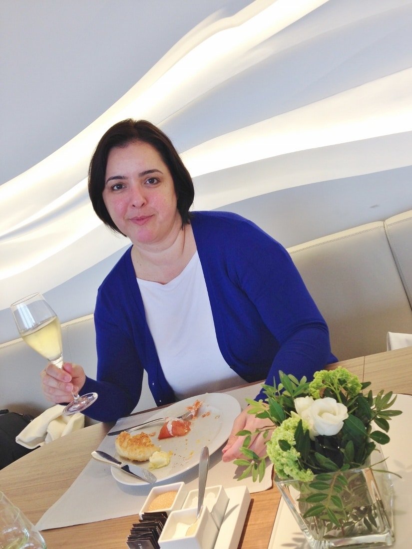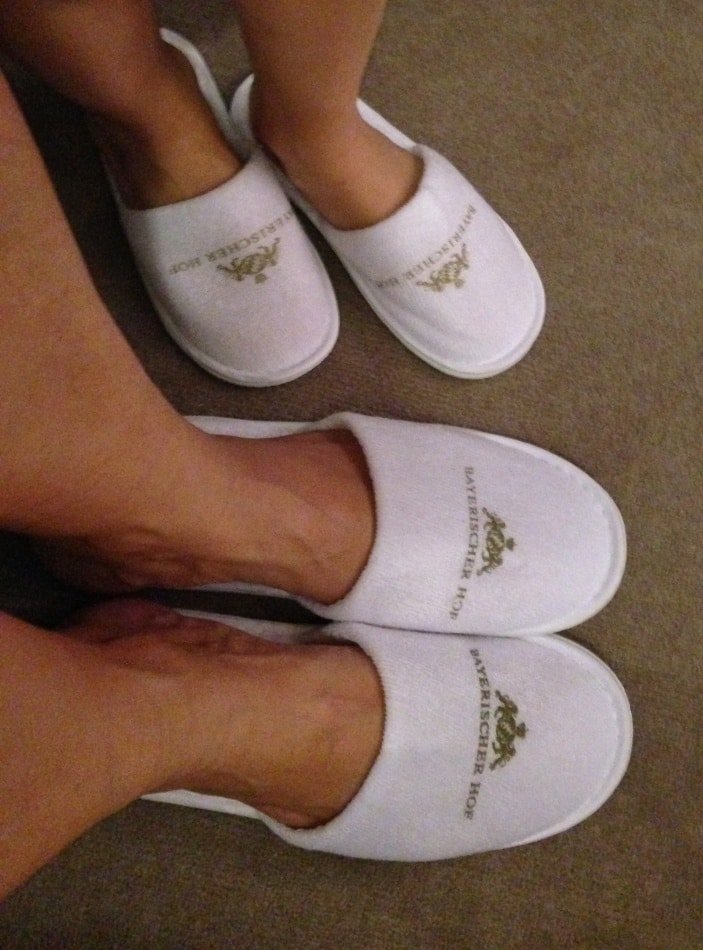 Nathalia recomenda um drink no Blue Spa, no terraço, com a visão do sol caindo atrás dos telhados de Munique. Joaquim e eu estávamos na piscina quando ela surgiu de roupão, uma taça de brut na mão e um sorriso discreto nos lábios. Depois, foi apreciar a vista de Munique da varanda ao lado. Eu, paparazzi nada vocacional, cliquei este instante que poderia ter a legenda ‘é chato ser chique’.